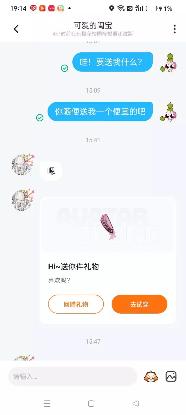 第一次有人送我东西,嘿嘿,我第一天跟她认识,她就要送我,还当了我的徒弟,好高兴