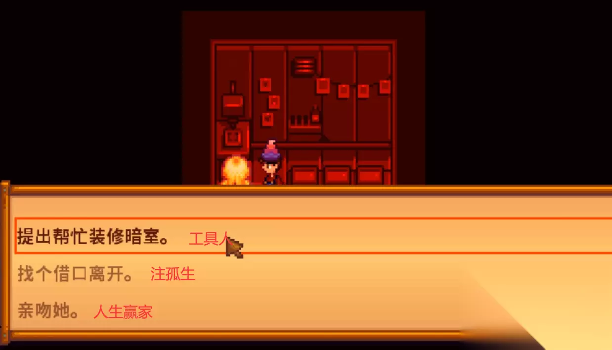 想要快速达到10心,除了每周献殷情,还需要利用好爱心事件来获取好感度。 二心事件中,建议选择"海莉,何不每周固定打扫一次呢?"可以+30好感度; 四心事件中,可以选择“是”+20好感度; 六心事件中,选择"我真的很抱歉…"+50好感; 而当玩家与海莉的好感度达到10心后就可以触发十心剧情,解锁海莉房间后面的暗门,这里各位可要把握好机会了,不要注孤生哦。