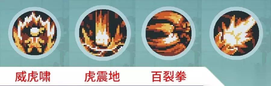 武斗家在没有普通攻击【出拳】的情况下,只能施放【威虎啸】,当进行普通攻击【出拳】后,技能按键图标会切换成当下能释放的小技能。