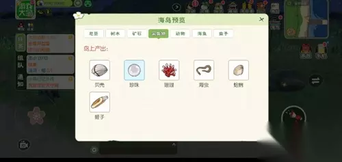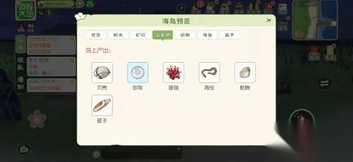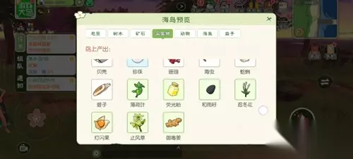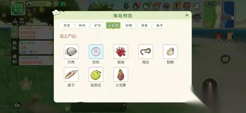 矿石:无 采集物:珊瑚、贝壳、珍珠、海虫、蛤蜊、蛏子、薄荷叶、荧光粉、和雨籽、忍冬花、闪灯果、止风草、御毒姜