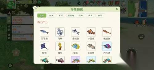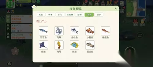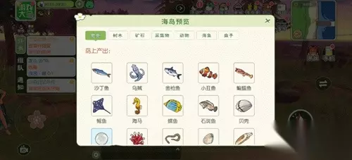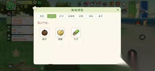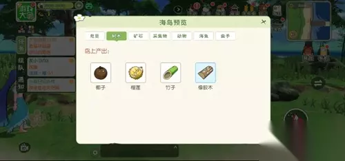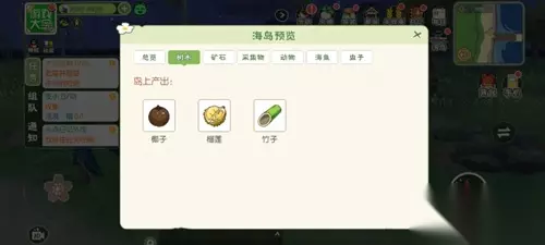 主要资源:海鱼、树木、采集物、动物。 树木:椰子、榴莲、竹子