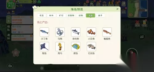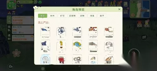 主要资源:甲虫、海鱼、树木、采集物、动物。 树木:椰子、榴莲、竹子、橡胶木