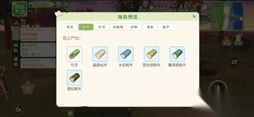 主要资源:甲虫、海鱼、树木、采集物、动物。 树木:竹子