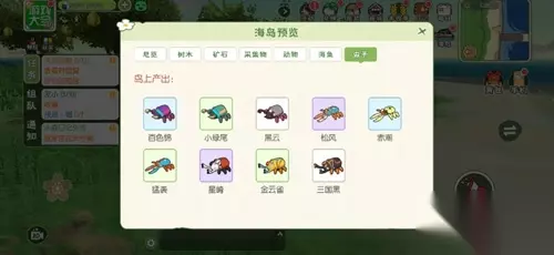 虫子:无 潮狩岛主要资源为稀有树植多一些,除了基本的海产类外,可以在岛屿中找哦许多稀有的植物采集物。