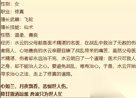 天书奇谈女修真周水云怎么样?天书奇谈女修真周水云厉害吗?有哪些属性技能?下面小编给大家带来了详细的攻略内容,帮助你更加深入的了解这位人物角色,快随小编一起来看看吧! 人物:周水云