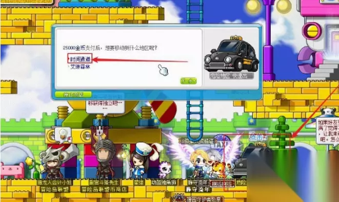 2、与城中的危险地区出租车对话,选择移动到时间通道;