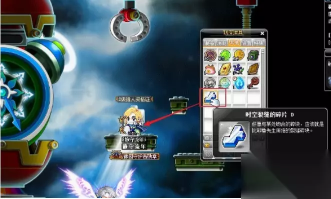 6、按“I”键打开背包,将背包中的那个碎片仍在漏光的地方;