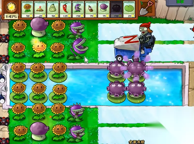 通关全面冻结关卡的核心在于快速清理冰道并阻止雪橇僵尸,同时构建以地刺为主的稳固防线。开局必须优先保证阳光供应,推荐在后场种植两排向日葵,为后续布局奠定资源基础。早期的僵尸压力可以利用土豆地雷和倭瓜进行化解,这两种一次性植物成本较低且效果直接,能为发展争取宝贵时间。火爆辣椒是本关的战略性植物,其作用不仅是瞬间消灭一整行的僵尸,更重要的是能彻底融化雪橇僵尸留下的冰道,冰道消失后地面才能重新种植植物,因此辣椒的使用时机至关重要。防御的主力是地刺和地刺王,它们能对经过的僵尸造成持续伤害,尤其能有效针对雪橇车僵尸。水路区域的防守可以相对简化,前期放置水草过渡,中后期在荷叶上种植两排豌豆射手通常即可应对。