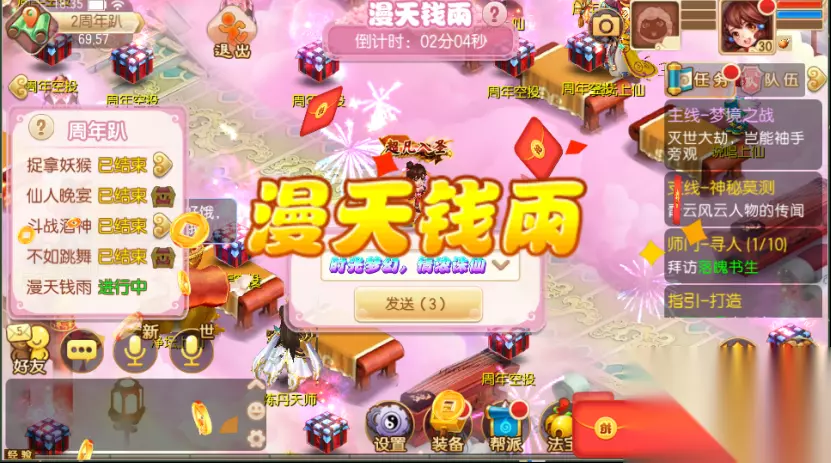 来了来了,大的终于来了,在人声鼎沸的舞会中漫天钱雨终于降临,少侠们赶紧来“捡钱”吧~