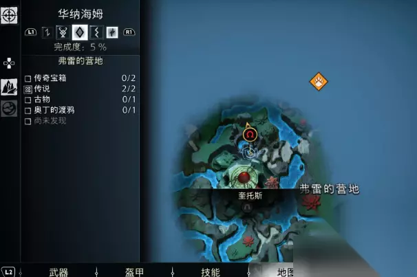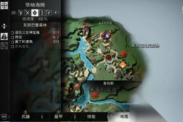 战神诸神黄昏华纳海姆全渡鸦位置 华纳海姆一共有15只渡鸦。 1、南部荒野(渡鸦1): 如下图所示的地方可以看到靠近树林的天空中有一只渡鸦。