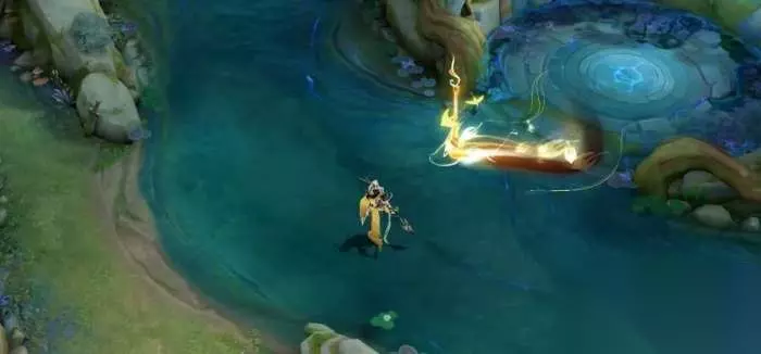 2、1技能特效:掷出流淌金色能量的神扇,到达技能区域后能量炸开,魔气消散;