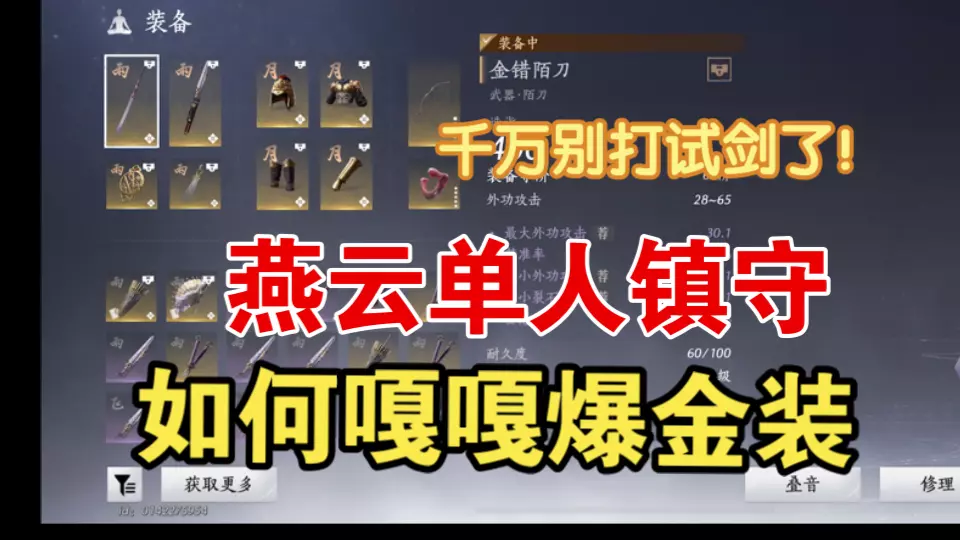 详细分析燕云刷装备的机制,单人镇守比试剑多60%金装?