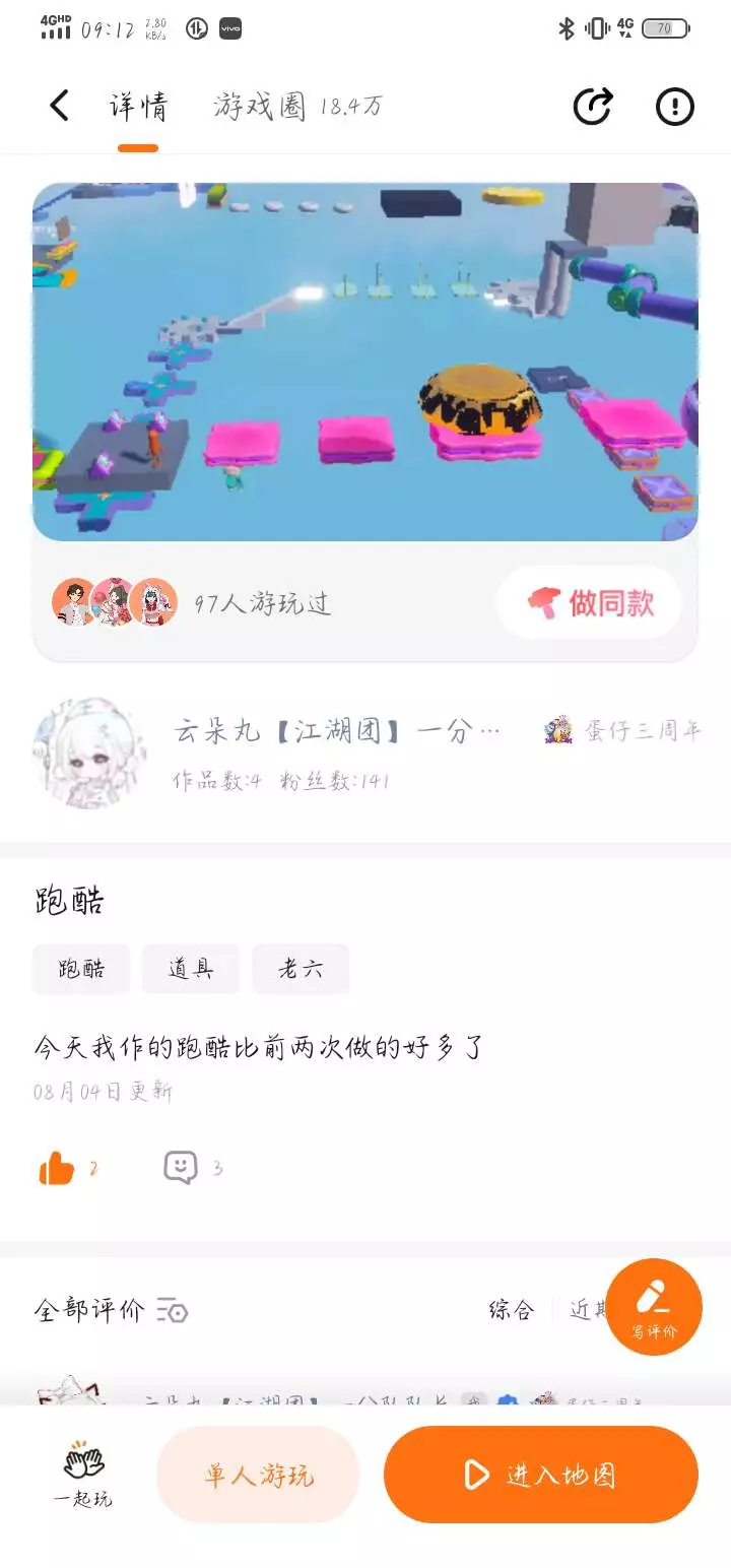 今天这位宝子的跑酷没有人玩,虽然很少人玩,请大家多多支持一下ヾ(✿゚▽゚)ノ