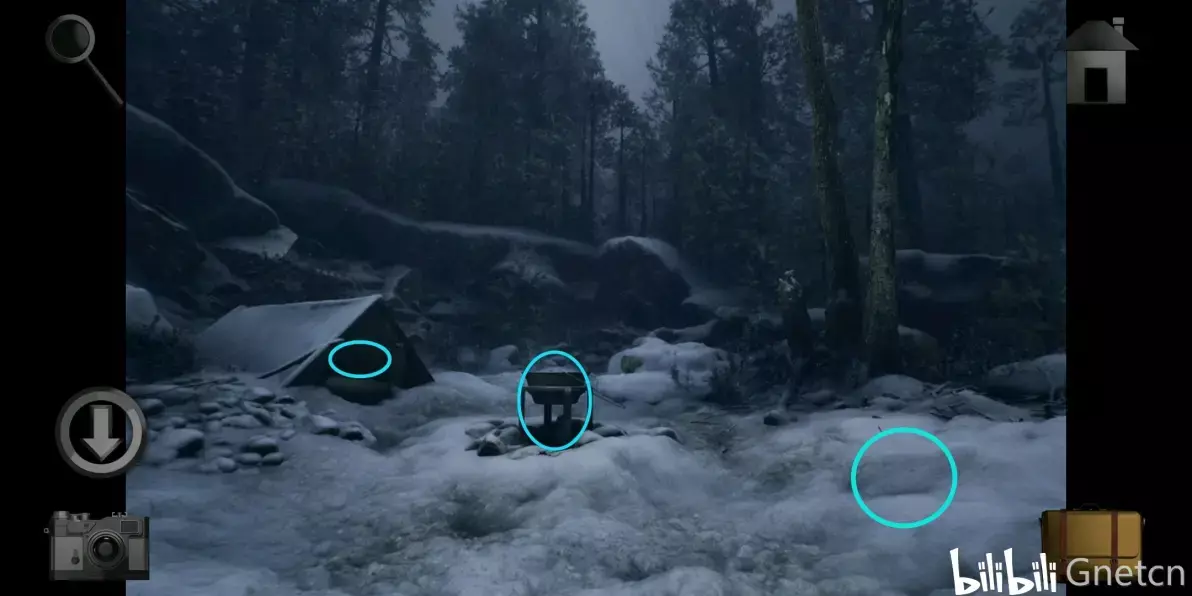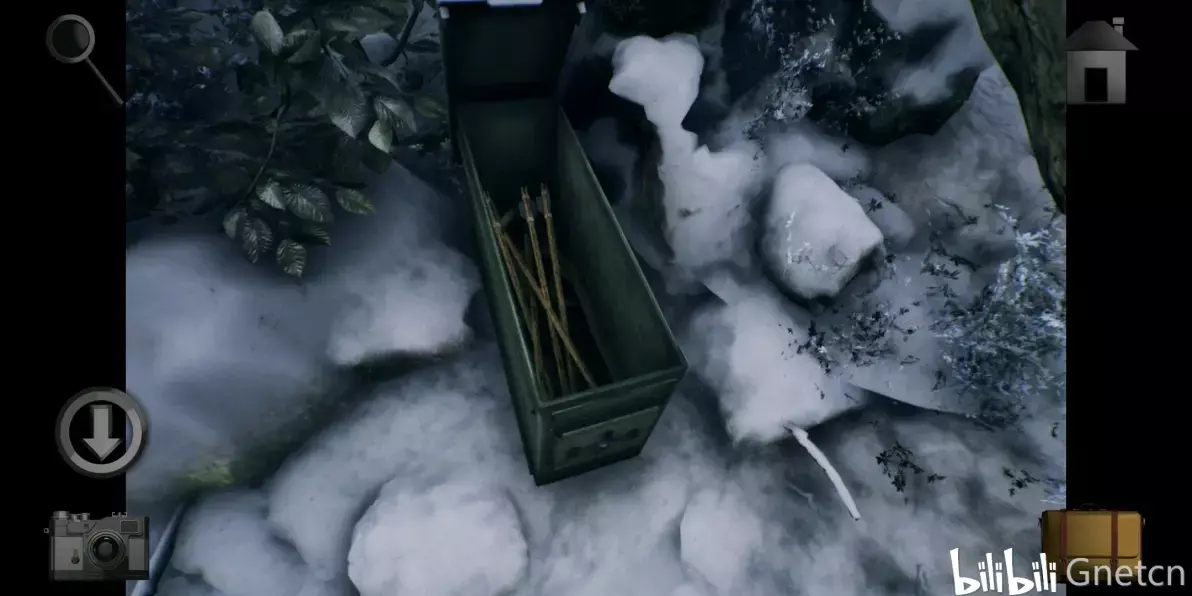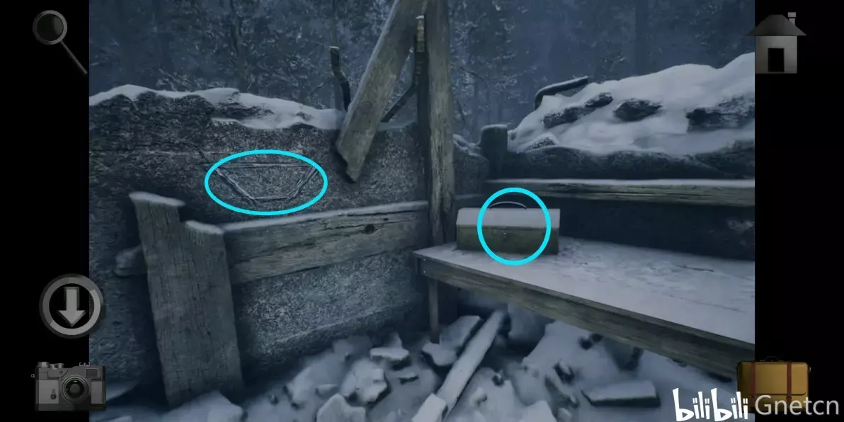 拿到冰块里的「旋钮」后根据木屋照片的提示用铲子挖营地右侧的雪地,将旋钮放在挖出来的盒子上然后进行调整,完成后拿走盒子里的「纸条碎片4」。