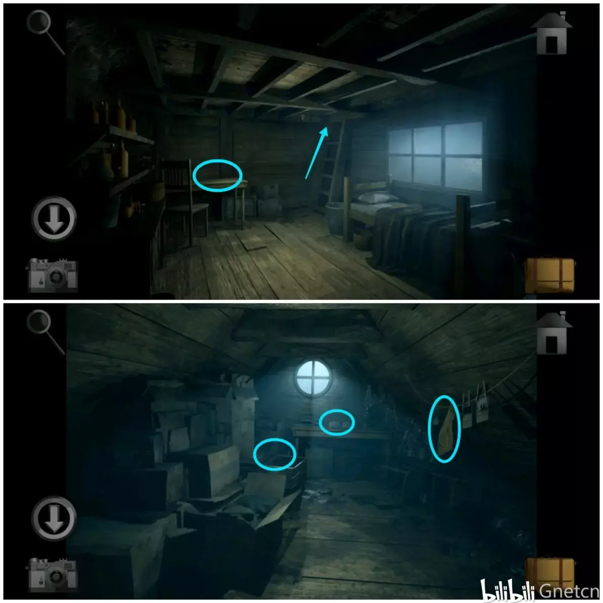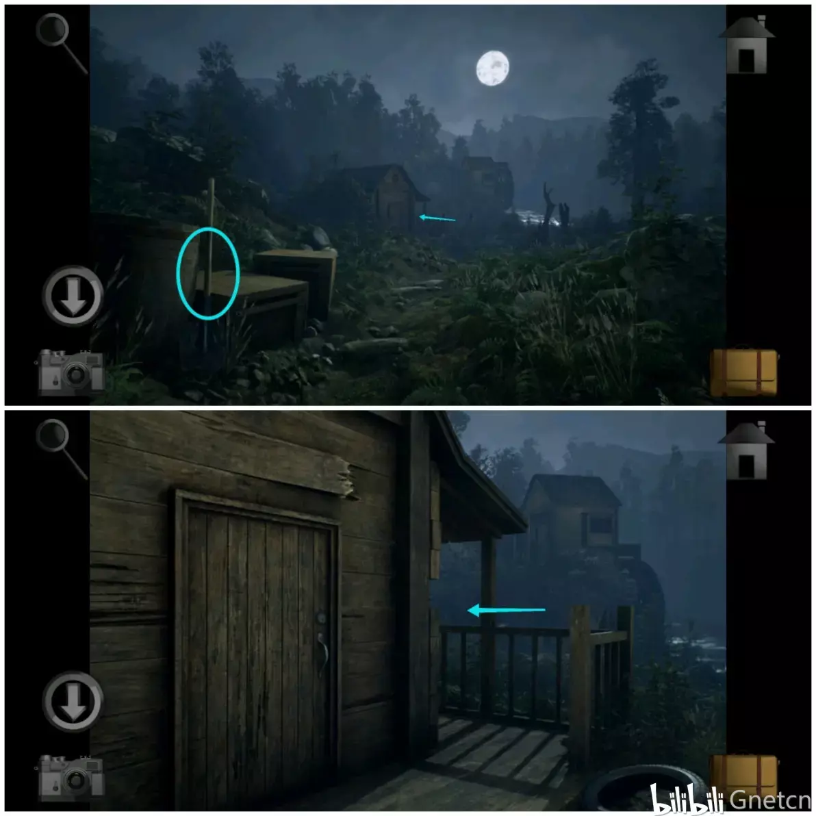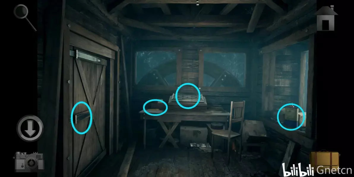 进入木屋后拿走右边窗台上的「机油」,再拿走桌子上的「纸条碎片2」。