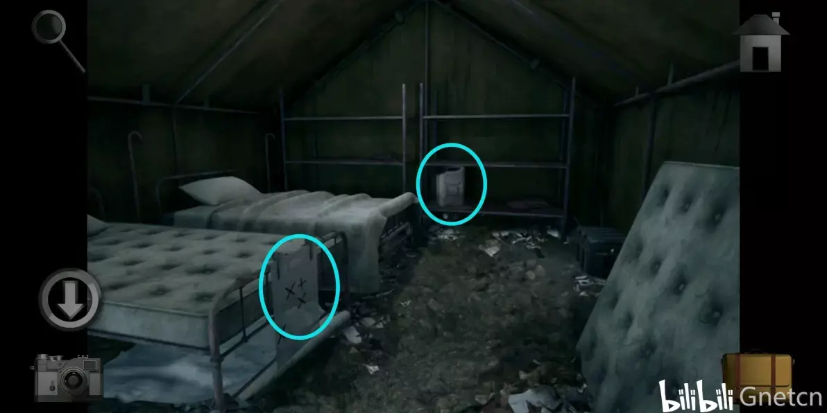 经过车库往外走来到医疗帐篷里,然后拿走床架上的「透明卡片」和货架上的「油箱」。接着回到掩体大门左侧的房间,将两张卡片放在看片灯上并重合。