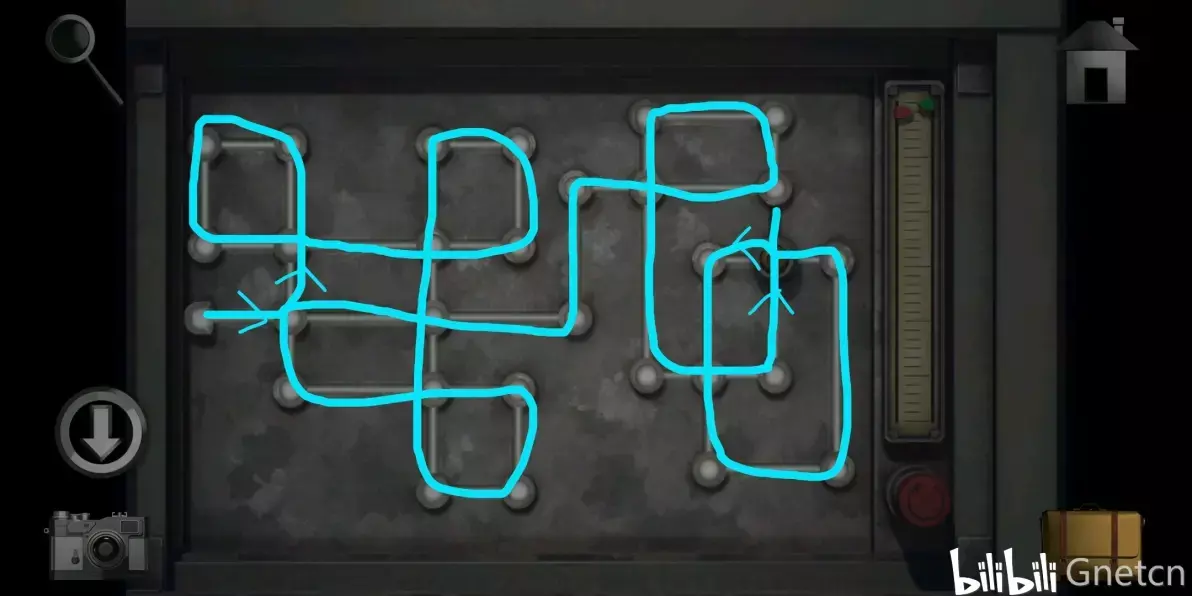 进入下水道后往里走,在右边有一个上锁的房间暂时不管,经过大型水库来到右边的隧道完成墙上的机关,打开暗格后获得「锤子」和打开门的提示。