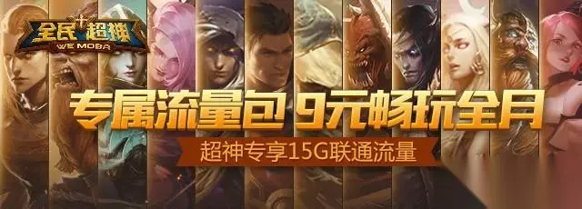 五、全新推出超神专属流量包!联通用户花费9元,即可享受每月15G的专属超神流量(包含语音流量),开黑新篇章 流量不用愁!