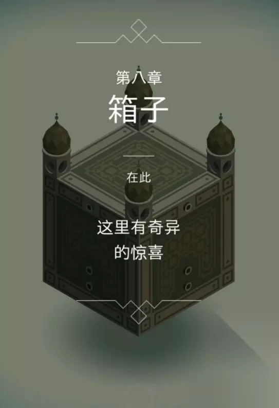 第八关的名称是箱子,这一关以其独特的视觉错觉和解谜元素著称,你的目标是通过操作箱子上的按钮进入不同空间并点亮所有灯塔,最终引导艾达到达祭坛。进入第八关后,你会发现一个封闭的箱子,首先点击箱子右上方的按钮,这时箱子的顶盖会打开,主人公艾达会出现,移动艾达去踩下场景中的开关以点亮第一个灯塔,然后走进出现的门来到箱子顶部,再按一下箱子上的按钮把盒子关上。接下来点击箱子左下方的按钮进入第二个空间,在这个空间里你需要耐心等待场景中的乌鸦走动并踩到机关,当乌鸦触发机关后道路会旋转变化,抓住时机快速移动艾达到达按钮处点亮第二个灯塔,完成后再回到入口处关闭盒子。