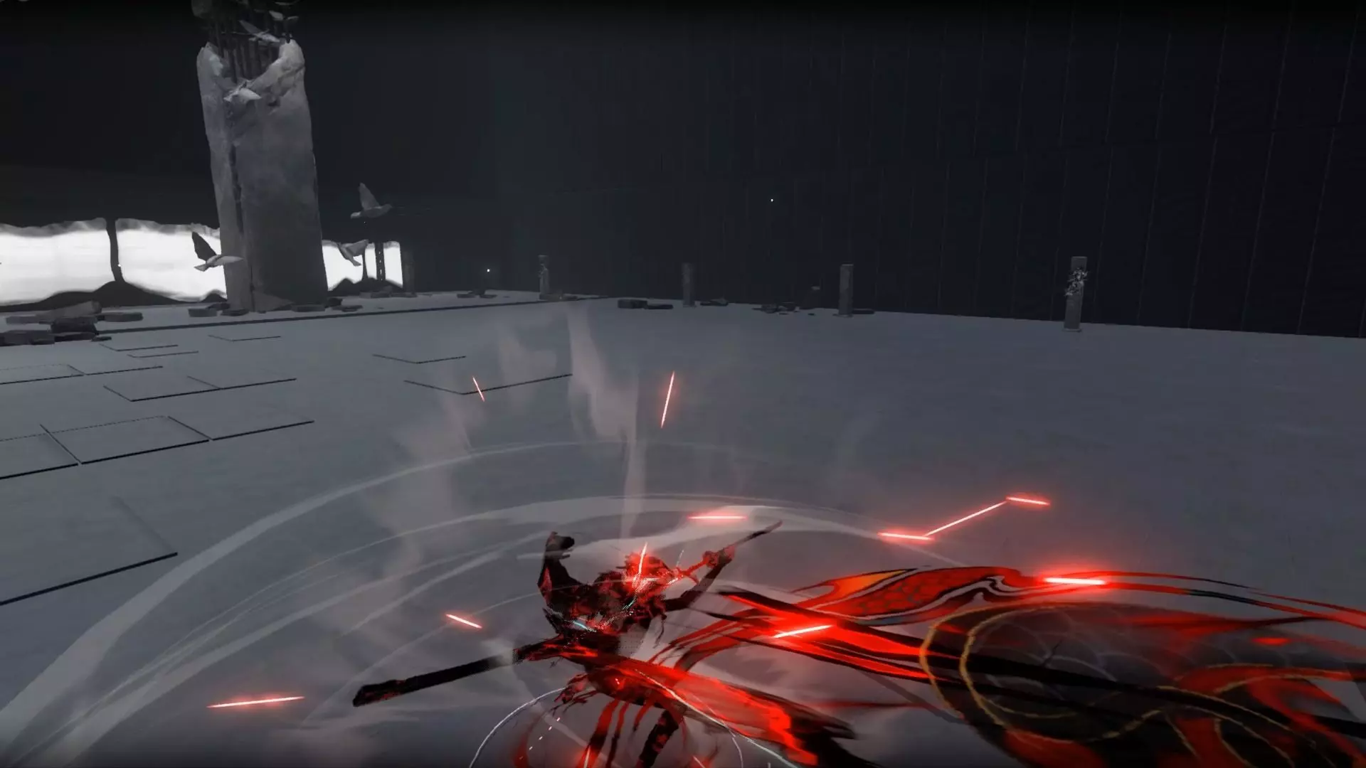 月黑寂夜,一束幽红掠过白皑山林。大殿外,贪嗔痴三毒尽显,诸恶生狞,虚像苦海孳生。她却不畏斩断羁束,疾雷彻意,劈落寒霜。鬼魅退散,真心归寻。