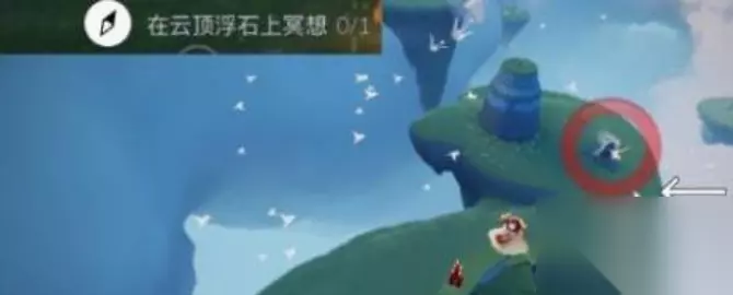 3、进行冥想 进入后直走就可以发现云顶浮石了,飞往冥想点,在石碑前方进行打坐,等待石碑全部亮起就可以完成任务了,大概需要等待50-60秒左右。