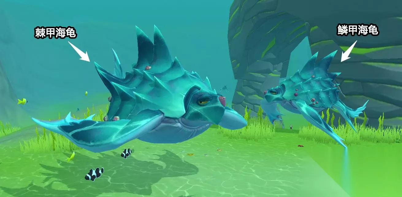 《创造与魔法》棘甲海龟保底饲料配方 鳞甲海龟&棘甲海龟捕捉 两种海龟都只能捕捉成宠物 鳞甲海龟40级可捕捉,棘甲海龟45级可捕捉 银色海带+水芦果饲料包+大海星=棘甲海龟饲料/保底19包