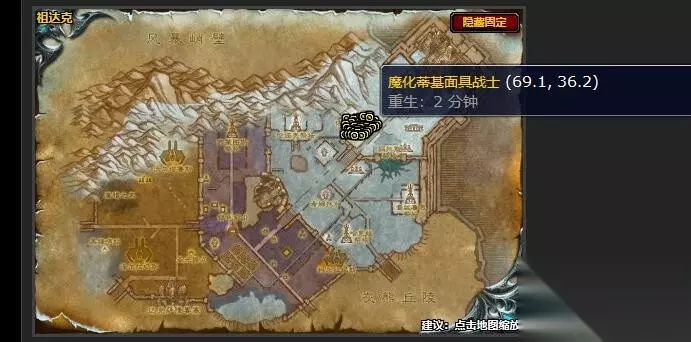任务目标:夺取12只佐尔玛兹要塞宝箱 来源:魔化蒂基面具战士;佐尔玛兹要塞宝箱 位置图: