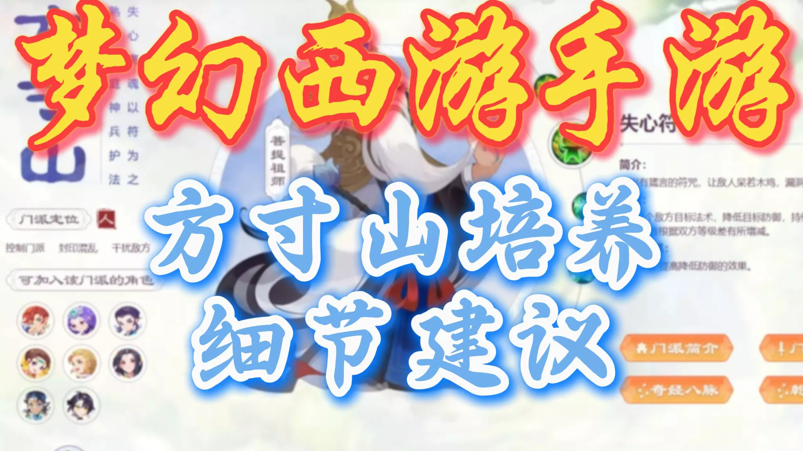 这是梦幻西游手游的门派避坑内容,提醒平民、小资玩家慎选方寸山,该门派虽为控制门派有强力封印技能,但十分氪金,成型慢,耗药量大,封印命中率低,对玩家资源要求高。