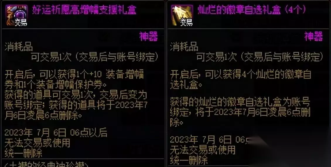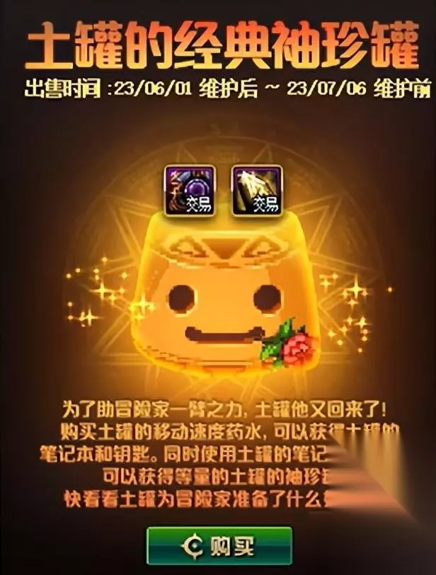 土罐的袖珍罐上新了好运祈愿高增幅支援礼盒和灿烂的徽章自选礼盒(4个),两者都是可以交易的。