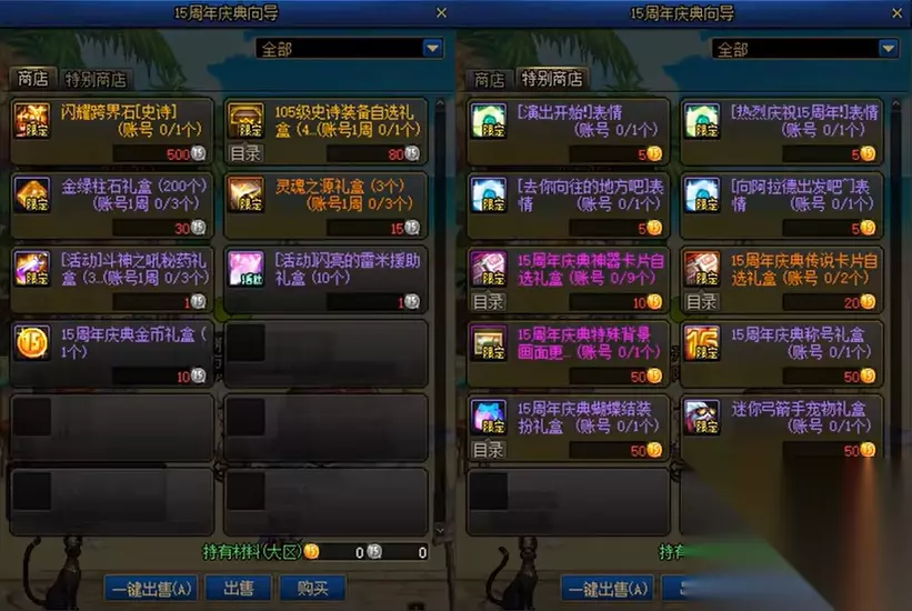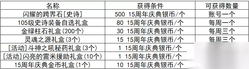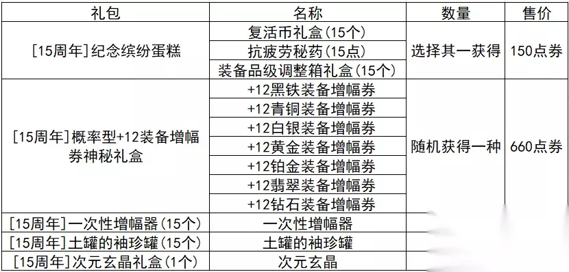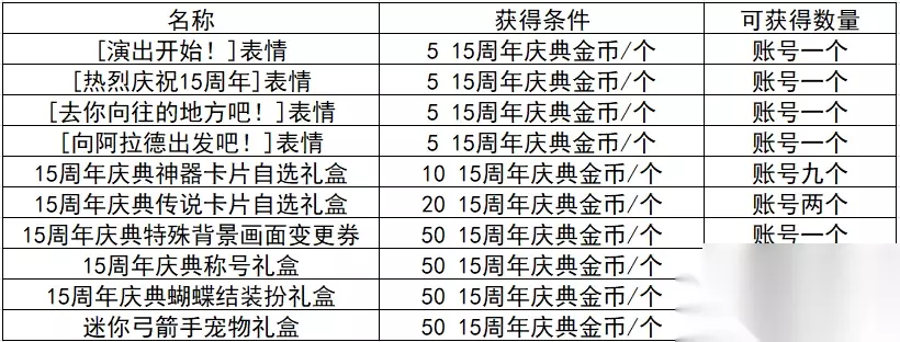 商城当中上线了15周年纪念道具,勇士们可以根据自身的需求在商城当中选购,下面是道具内容详情: