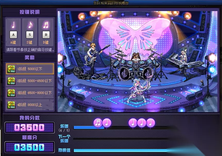 简单的炫舞小游戏,达成不同的分数阶段可以获得不同的礼盒,下面是奖励详情: