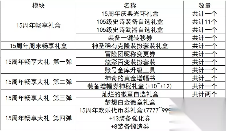 再过几天就是DNF15周岁了,游戏内上线了大量的活动供勇士们参与,那么这些活动都有哪些奖励呢?下面笔者为大家统计一下,帮助小伙伴们更好地使用奖励。 一:15周年登录大礼