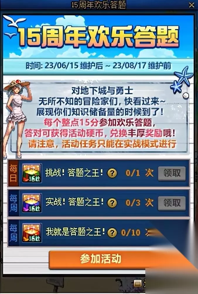 每日整点15分可以在活动面板当中参与答题,参与活动即可获得丰富的硬币奖励,使用硬币可以在周年庆典商店当中兑换奖励。下面是奖励详情: