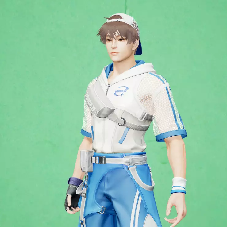 奶茶灰短发从白色帽檐下炸出叛逆,汗珠沿着后颈划出元气轨迹。