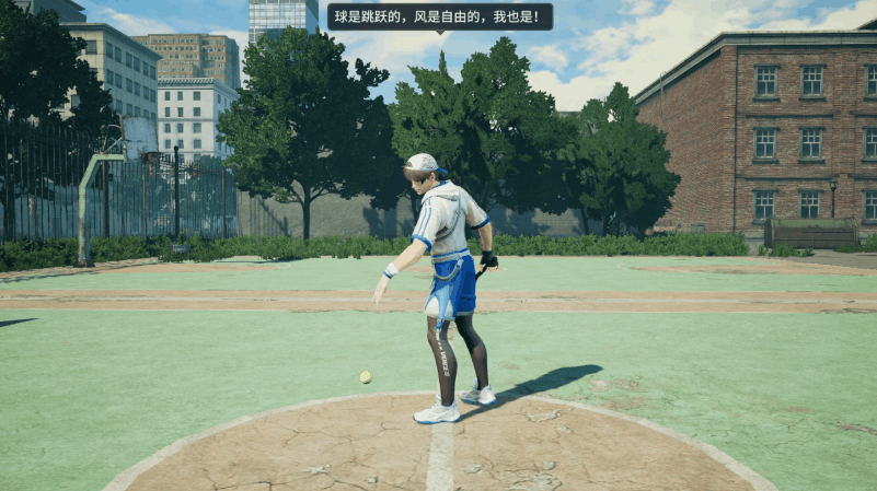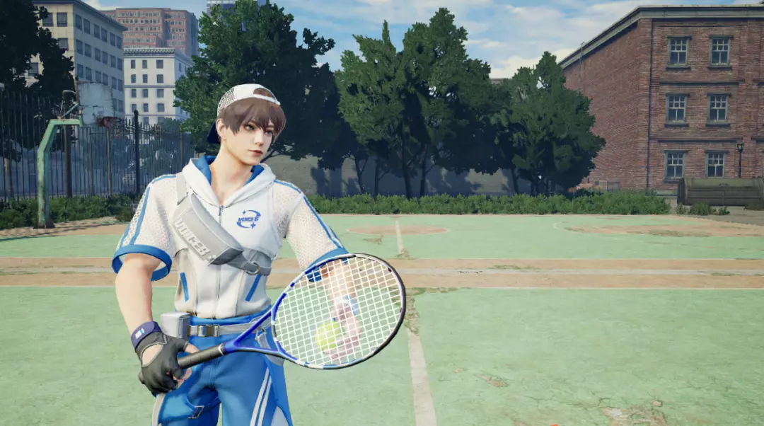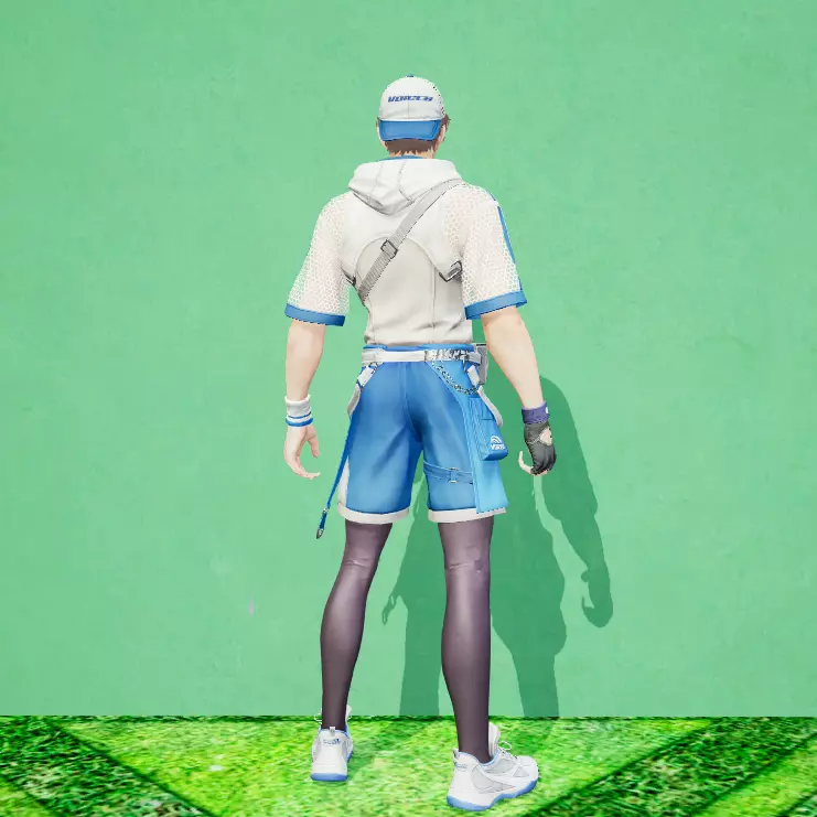 白色连帽衫的旋风纹样劈开热浪,衣袖的镂空网格随挥拍动作鼓动气流。斜挎的银色小包如一道流星轨迹,在晴空下勾勒出运动美学的锋锐线条。