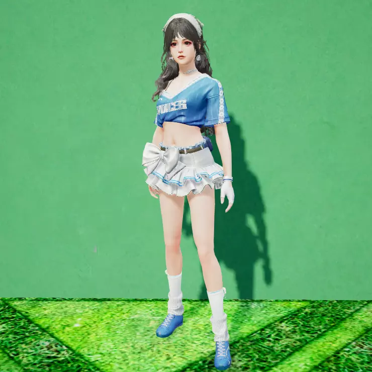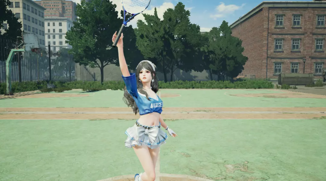 纯白堆堆袜裹住脚踝,蝴蝶结丝带随着每一次的跳跃而飞扬。蓝色运动鞋在球场跳动,这是网球少女攻向网前的轨迹。