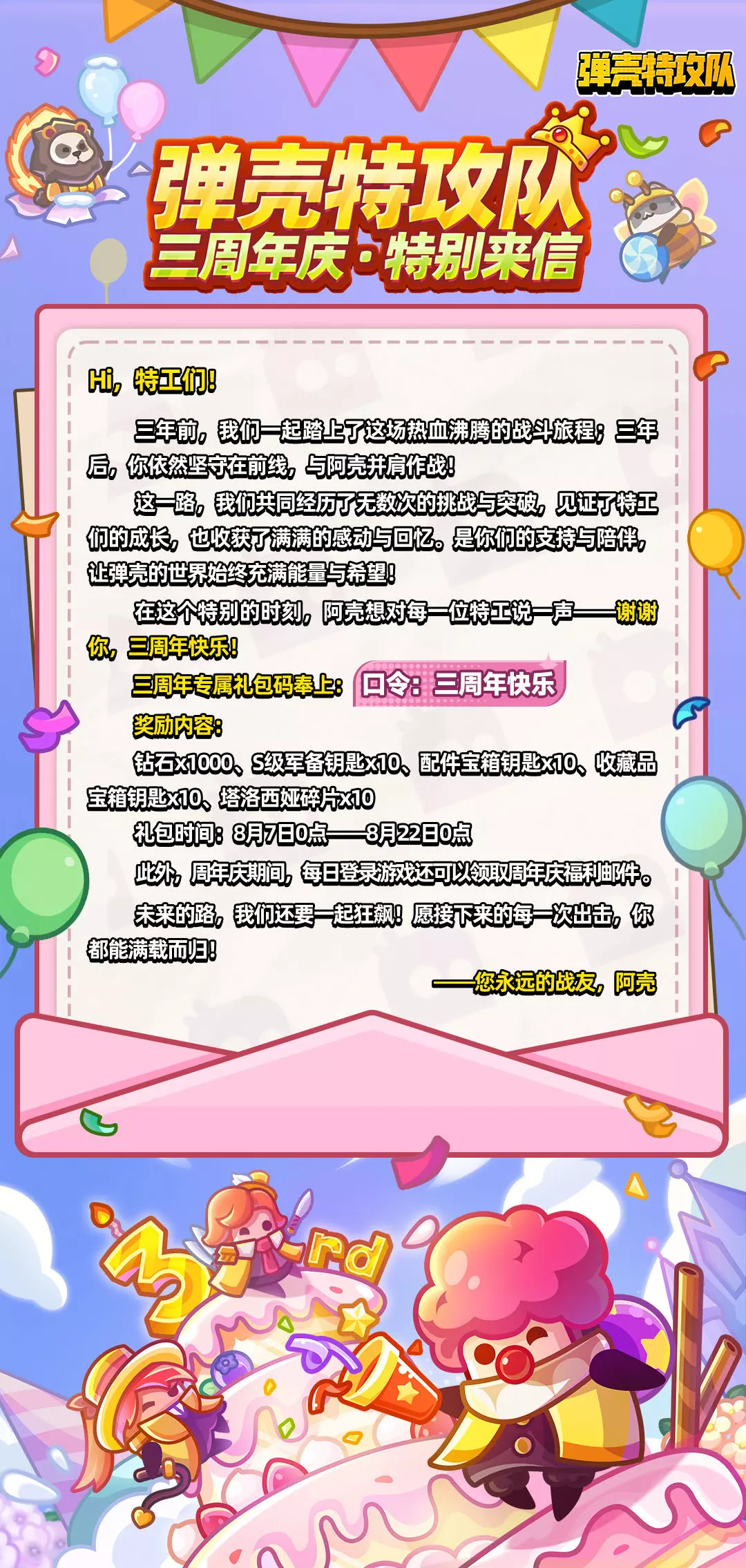 弹壳特攻队三周年特别来信!