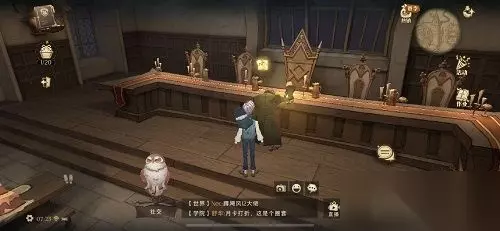 这块拼图相对好找很多,直接进入礼堂,走到尽头找到费尔奇,与他对话后可以在邓布利多的椅子上找到黄色操作光点,与其交互可以得到今天第二块拼图。