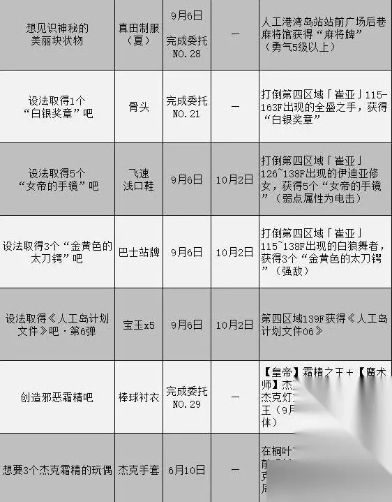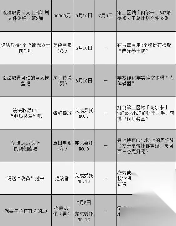 女神异闻录3携带版游戏里不管男主线还是女主线都有相应的委托任务需要完成,有些网友知道的不全面,这里给大家带来了女神异闻录3携带版委托攻略汇总表,一起来看下文中介绍吧。