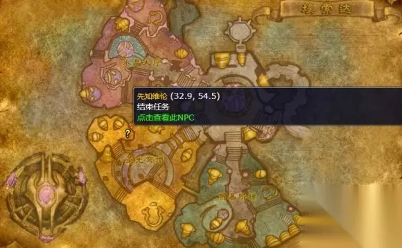 完成与图伦的对话后,前往埃索达(坐标:32.9,54.5),找到先知维伦提交任务。