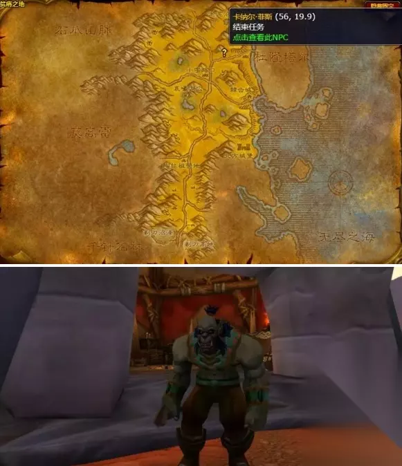 部落阵营:在奥格瑞玛(坐标:38,37.7)找到希尔恩・火结,接取任务后前往贫瘠之地(坐标:56,19.9)找到卡纳尔・菲斯。