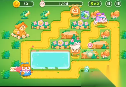 《保卫萝卜4》绿野奇缘第16关攻略 1、首先是在第一波的时候是用毒针塔来攻击兔子,用另一个道具来攻击木桩。