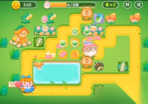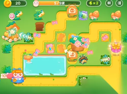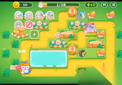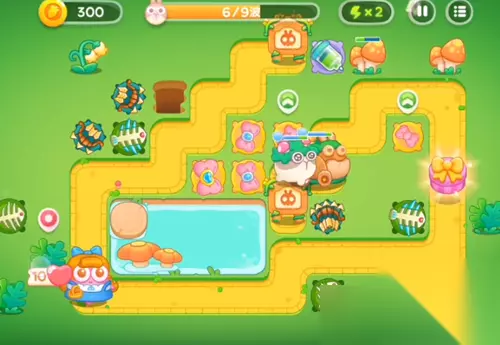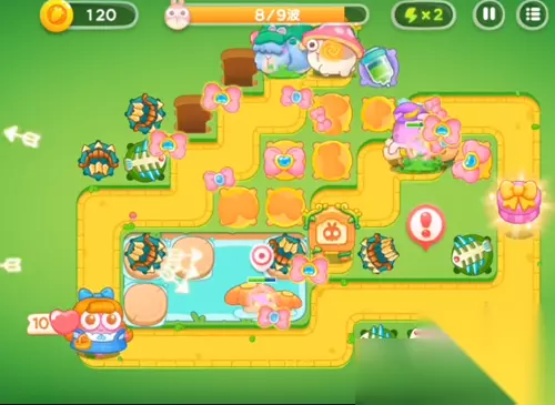 7、给左下方的鱼塘里面继续增加多重箭,中间的进行攻击蝴蝶结。