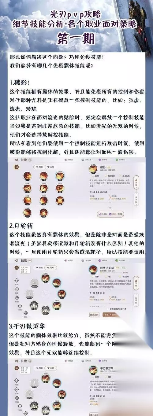 2.旋风斩:可以对周围多个敌人造成伤害,并且附带眩晕效果,非常适合多敌情况下使用。 3.光之护盾:可以对自己进行护盾加持,减少受到的伤害。 4.剑气冲天:可以向前方冲刺,对路上敌人造成伤害,并且造成击飞效果。 5.光之领域:可以对周围多个敌人造成伤害,并且附带减速效果,非常适合团战情况下使用。 三、光刃职业的装备选择 在选择装备的时候,应该优先选择攻击和生命值加成较高的装备,同时可以根据自己的喜好选择其他加成。 四、光刃职业的战斗技巧 1.合理利用技能连招:在战斗中,需要根据敌人的状态来决定使用技能的顺序和时机,让连招更加流畅。 2.注意自身生命值:光刃职业虽然拥有强大的生存能力,但是也需要注意自身的生命值,及时回复和躲避敌人攻击。 3.保持距离:光刃职业是以近身攻击为主,需要保持一定的距离,以免被敌人近身攻击。 五、光刃职业的升级建议 1.优先升级攻击技能:攻击技能是光刃职业最基本的输出手段,需要优先升级。 2.提高生命值和护盾:光刃职业的生存能力很重要,需要优先提高生命值和护盾的效果。 六、光刃职业的队伍搭配 光刃职业比较适合在前排输出,后面可以搭配法师或者其他职业进行支援。 七、光刃职业的优缺点 优点:输出高,生存能力强,适合近身输出。 缺点:需要注意自身生命值,易受到远程攻击。 八、光刃职业的PVP技巧 1.充分利用技能:在PVP中,需要充分利用技能,让连招更加流畅。 2.注意防守:在对方攻击的时候需要及时进行防守和闪避,以免被秒杀。 九、光刃职业的团战策略 1.先打控制:在团战开始时,需要先打控制,制造混乱,并降低敌方的战斗力。 2.支援队友:在团战中需要及时支援队友,保持团队的战斗力。 十、光刃职业的适合场景 光刃职业比较适合在多敌情况下进行输出,例如副本等。 十一、光刃职业的不适合场景 光刃职业在面对远程职业时比较吃亏,需要注意不要被对方远程攻击。 十二、光刃职业的成长建议 1.坚持练习技能连招,让连招更加流畅。 2.注意自身生命值,及时进行回复和躲避。 十三、如何选择光刃职业 如果你喜欢近身输出并且想要拥有强大的生存能力,那么光刃职业是一个不错的选择。 十四、光刃职业的进阶之路 在掌握了基本技能和连招之后,可以尝试学习更高级的技能和连招,提高自己的战斗力。 十五、 通过本篇文章的介绍,相信大家已经对光刃职业有了更深入的了解。只有掌握了正确的使用技巧和升级策略,才能让你在游戏中表现得更加出色,成为一名光辉战士!