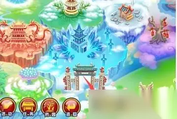 4、返回到主页面,点击天宫道(此处以天宫道为例)。 5、进入天宫道后进入战斗模式(在天宫道一片白云遮挡的位置,攻击白云大约5次,即可打开蟠桃园隐藏关卡的入口。保持不动5秒左右,即可进入到蟠桃园地图里)。