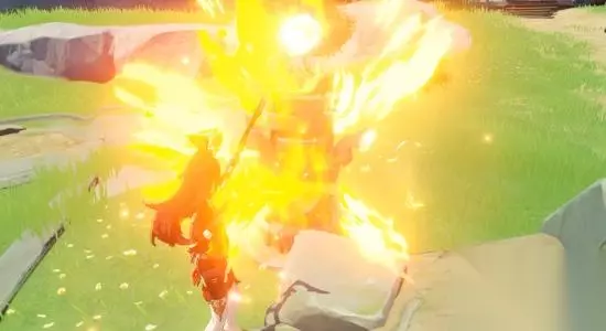 ▲东南方日食族 最后的东南放的封印,由深渊法师和丘丘暴徒看守,莽就完事了!火元素破木盾和冰系深渊法师。使用火属性角色激活柱子;
