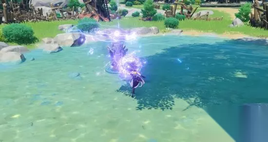 ▲南方好睡族 南边封印,在营地中间的大树下,建议可以优先清理哨塔上的弓箭手再解决丘丘暴徒。使用雷属性角色激活柱子