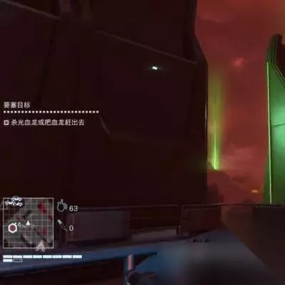 这是一批增援,但无需担心,只要不进入要塞,增援再多也无关紧要。等待血龙解决所有敌人,再将其引出,任务完成。 全程未被敌人发现,为潜行攻略,但奖励未变,故不再做潜行攻略。接下来前往下一个据点,该据点位于地图东面。使用狙击枪解决门口的两名守卫,尽量制造大动静,以免被发现。 解决守卫后,切换步枪,从后门绕过去,避免被敌人发现。增援来了也不要紧,与我们无关。进入小门后,绕过房间,关闭要塞巨盾的开关,并随手丢一个生化心脏,将血龙引入。接下来的任务交由雪龙处理。既然它被命名为“血龙”,我们应该好好利用它的力量。要知道,“惊魂三血龙”的称号可不是白来的。我们需要在这里补补血,消灭漏网之鱼。这个DLC仍然保留了扭胳膊回血的设定,但它已经进行了重新设计。动作流畅,令人欣慰。我已经解放了几个据点,但我的血量已经剩下两排了。如果我只靠扭胳膊回血,那得等到猴年马月才能补满。因此,最好随身携带一些血药。仅仅依靠扭胳膊回血,可能会比敌人还慢。