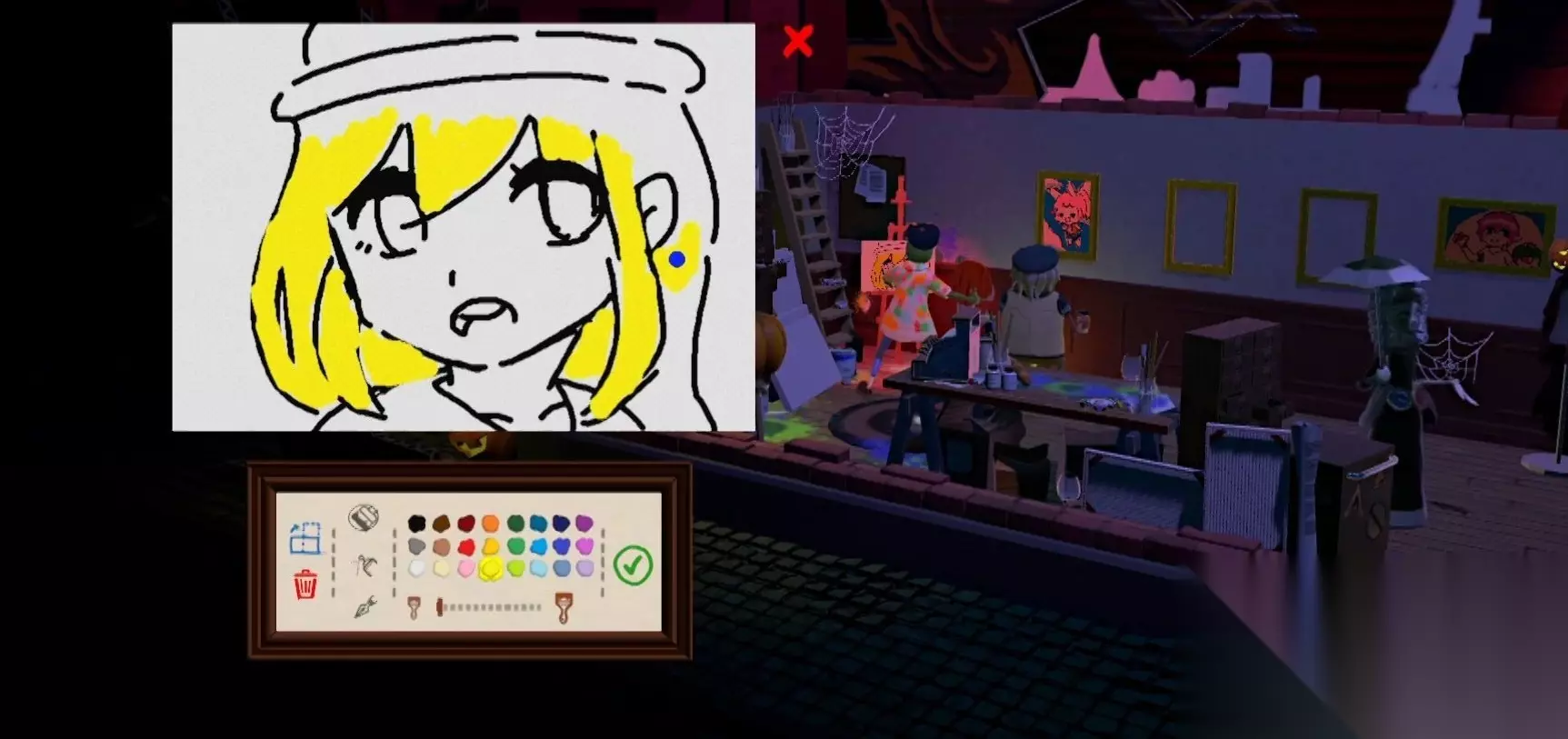 二、游戏玩法介绍 饥饿派画家游戏是一个围绕绘画和经营为主的综合性游戏,玩家大部分时间都是在自己的工作室内进行绘画涂鸦,当绘画完毕后就可以在很多场合进行售卖,在售卖过程中会遇到很多的npc,这些npc会对画作进行评价,当然不是所有评价都是好的。