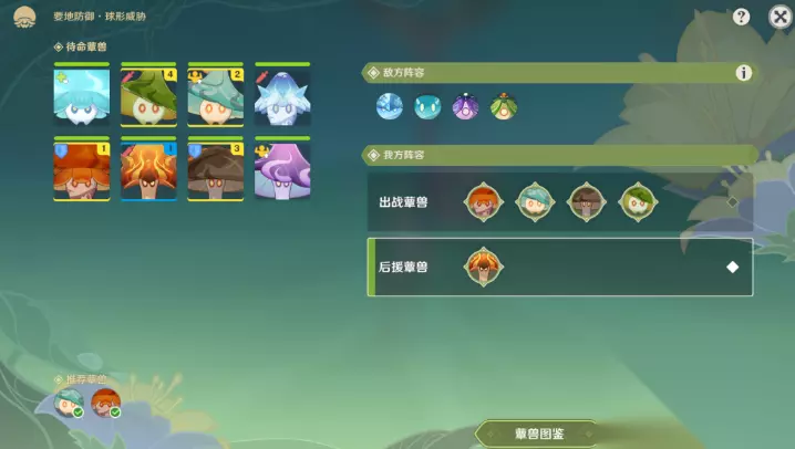 2、选择出战蕈兽,确认编队(2-1-3-4)。